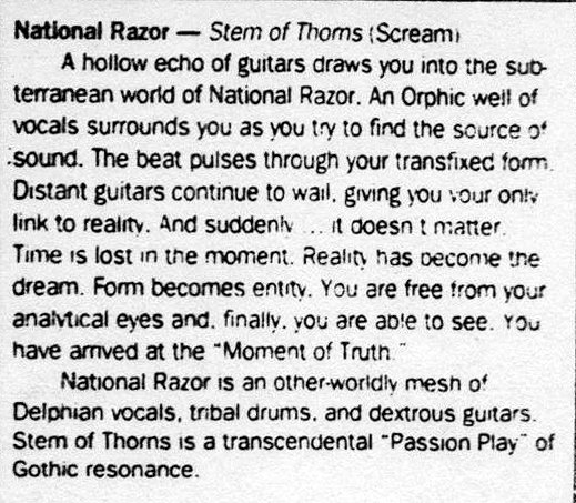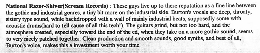 A godsend! A wonderfully morose goth band. Cynical, melancholy, yet
