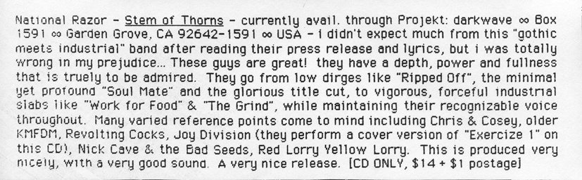 Industrial Nation: "One of the best offerings I've heard from a new band in a while." |